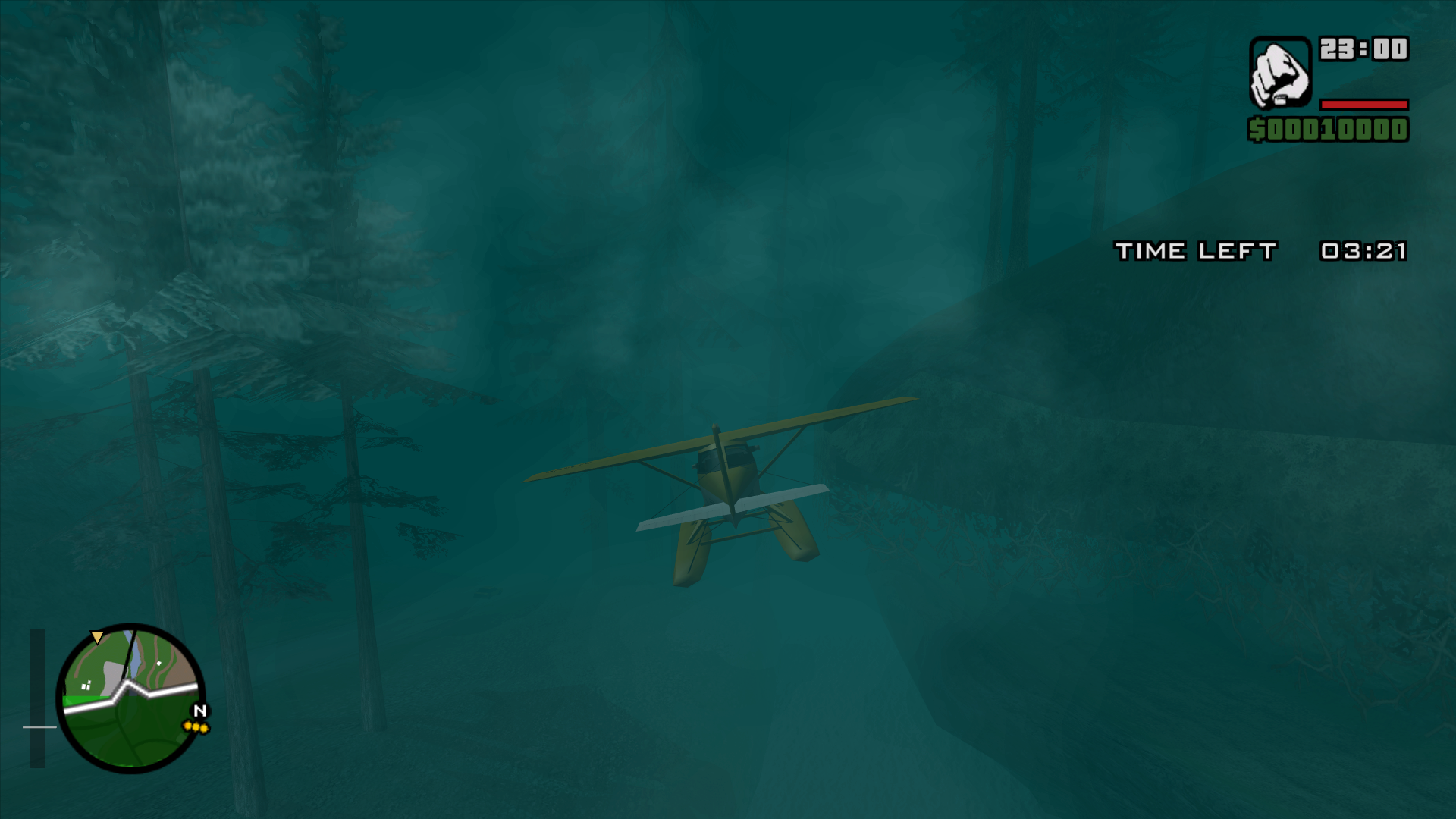 Flying around in such dense fog, dodging trees and hills, is actually quite difficult. The time should be more than enough for anyone to finish the mission, I usually reach the goal with more than a minute left, flying slowly. The real purpose of the timer is to force mistakes from needlessly hasty players, who rush into the goal without thinking the situation through.
